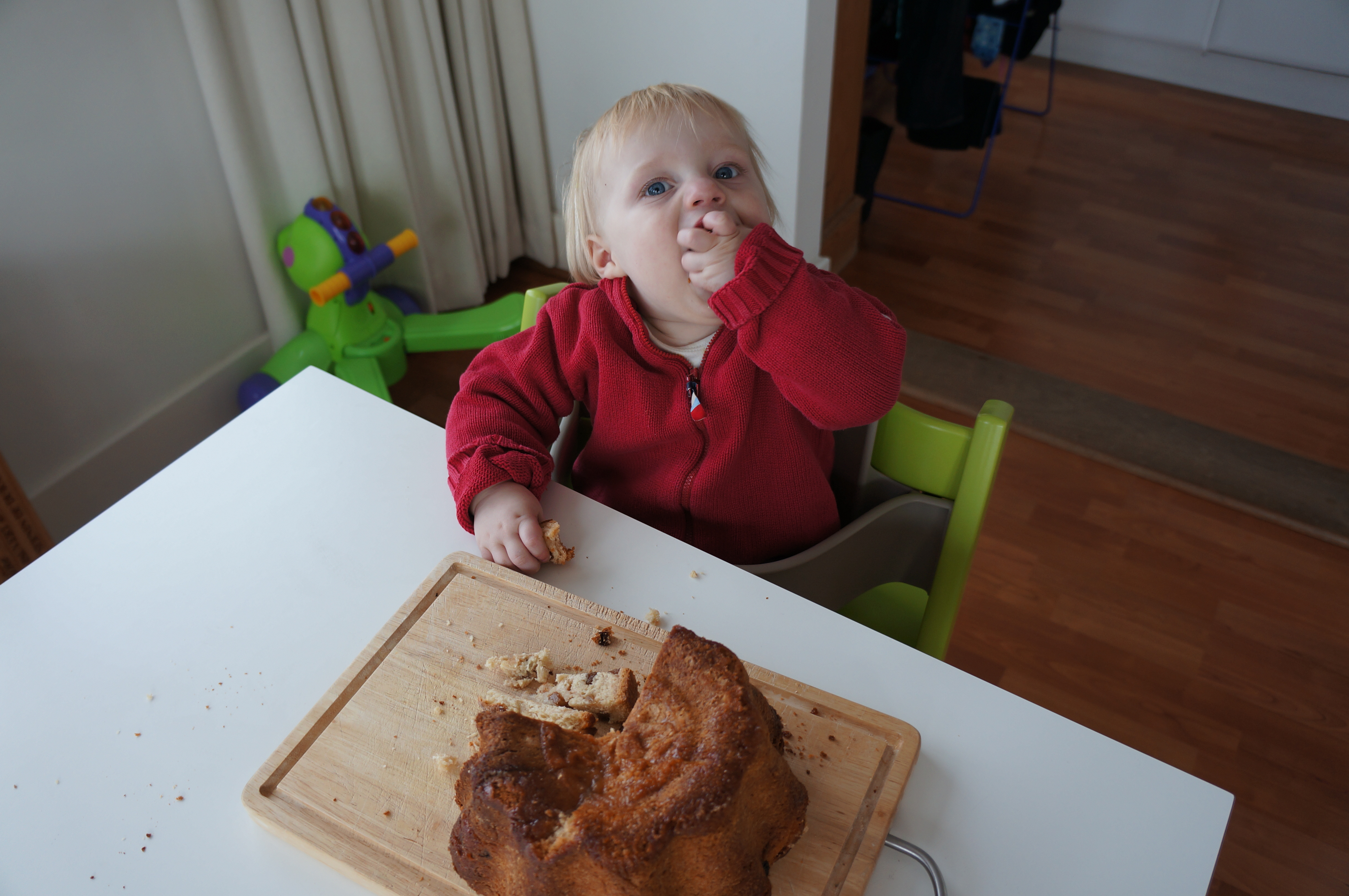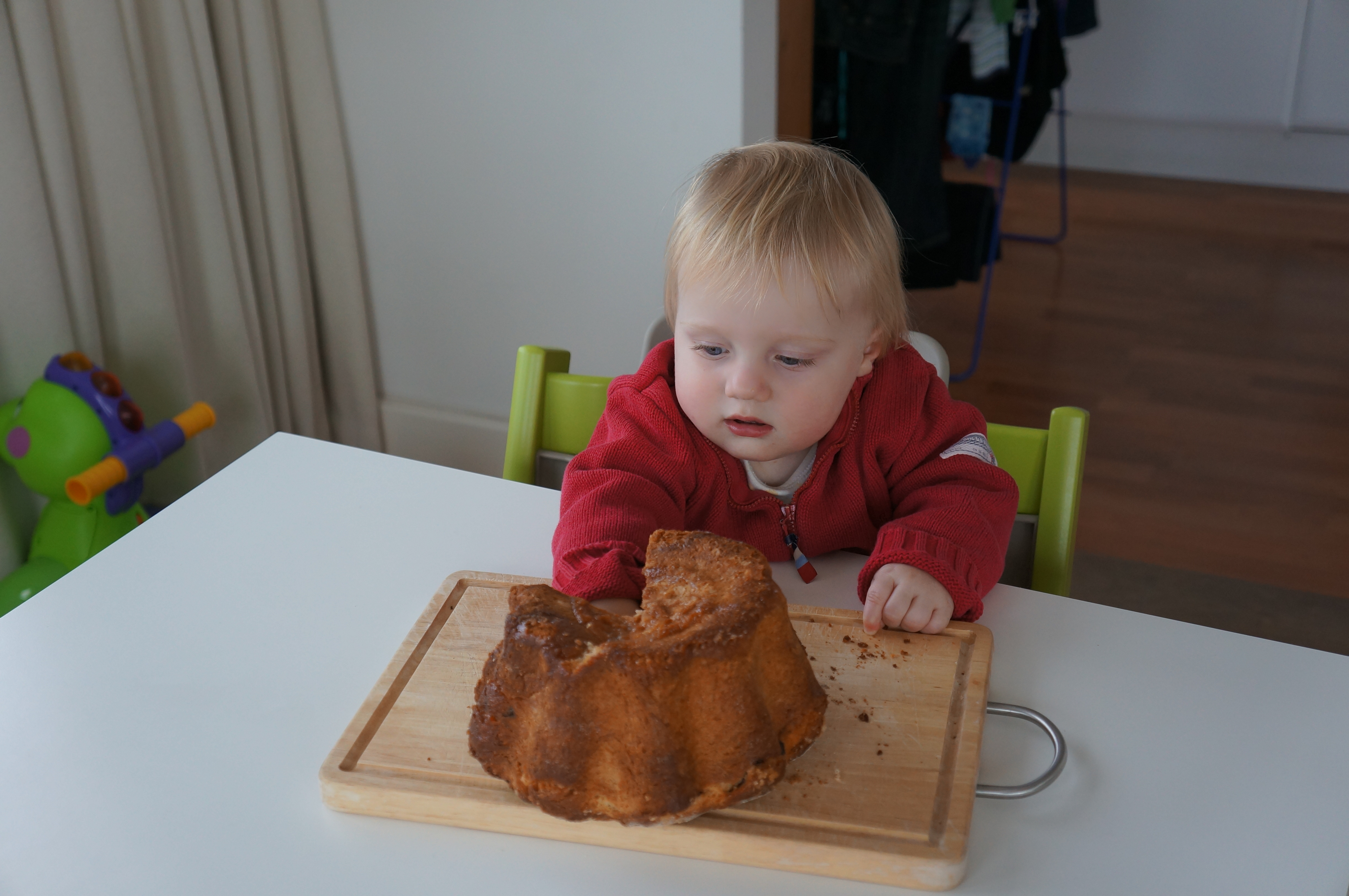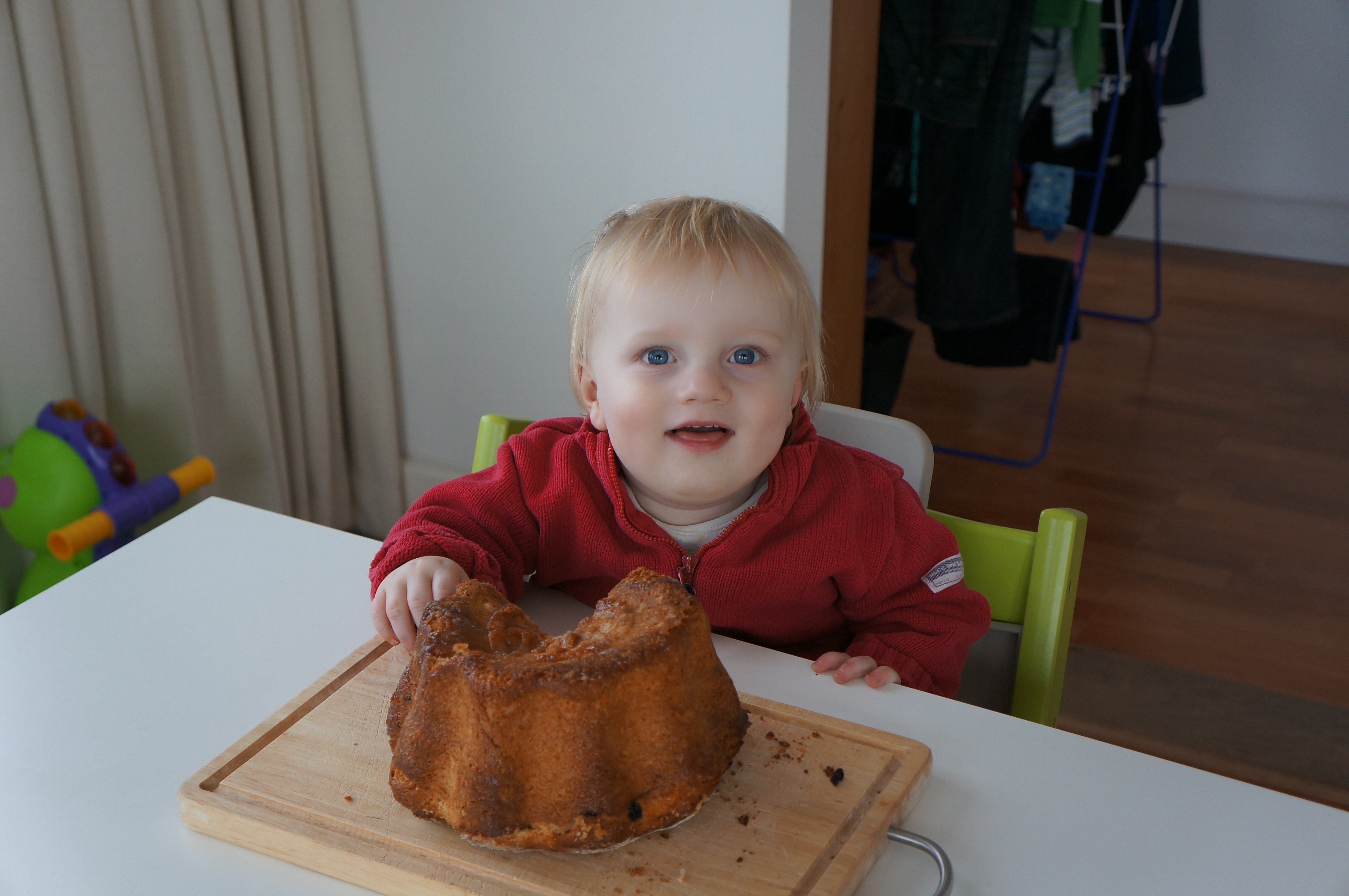 Carinthia has its traditional pastry – the Reindling. This year we are going to the Belgian coast for Easter. Therefore Maman baked a Reindling for me a week earlier. Unfortunately it is so good that Papa is eating the whole Reindling… For those of you who have no clue what I am talking about it is a yeast dough with cinnamon, raisins and sugar. Still no clue? Here are some photos: