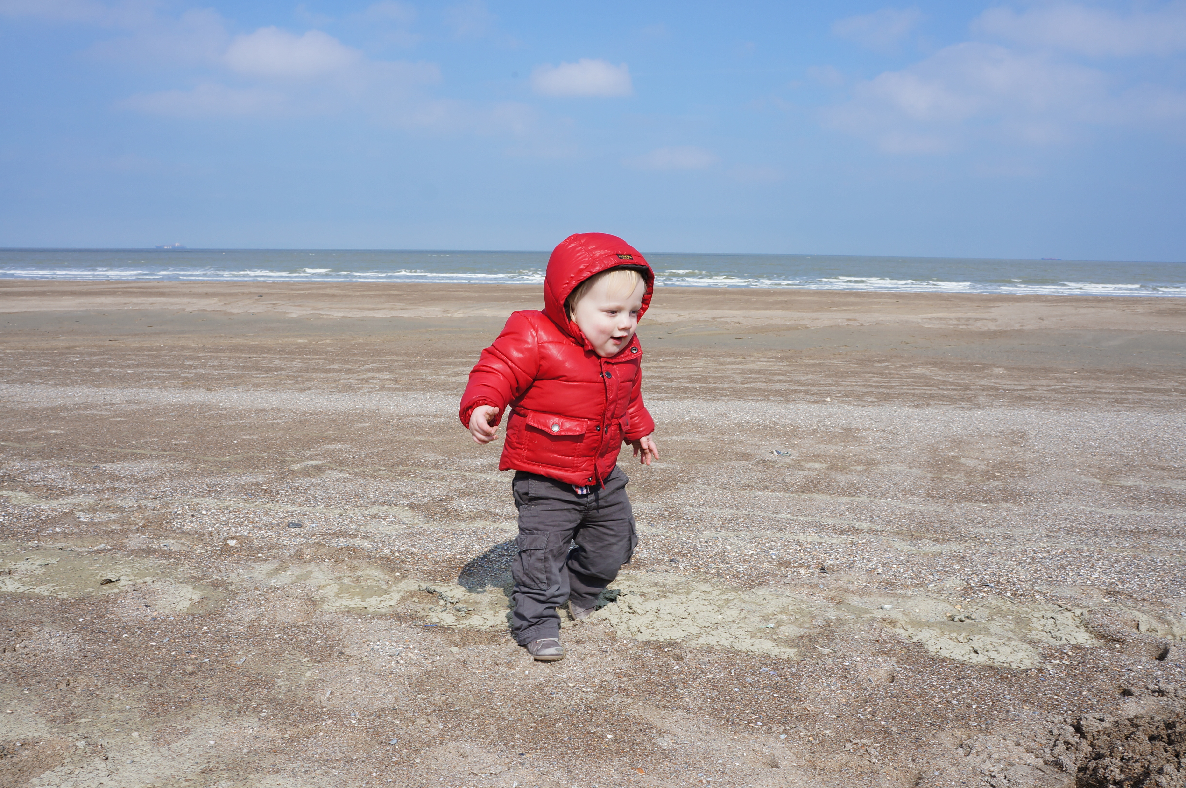 One of my first Christmas presents was a wonderful toy car. Now I am old enough and I took the car to the seafront pedestrian zone – I noted a few envious children. I obviously also spent a lot of time on the beach. I love the sand. In the nursery I always play in the sandpit but the beach is an enormous sandpit. And I have all the required tools to build castles. I also visited the Zwin which is an amazing bird reserve.