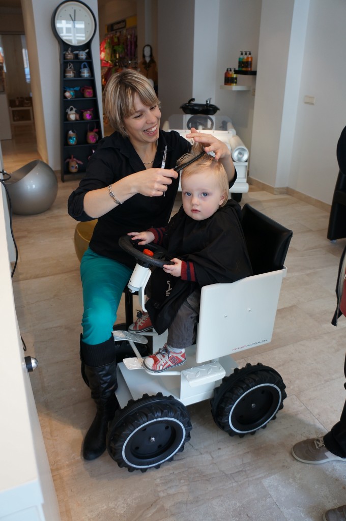 Finally it was time for my first haircut from a professional hairdresser. No disrespect for my parents who so far did a reasonable job is trimming my hair. But this was an entirely different experience. I was seated in a car with my steering wheel. I feel much more comfortable with my new haircut and I hope I will get some nice compliments back in the nursery on Monday.